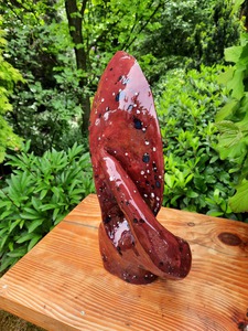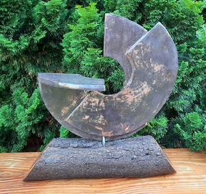 Een mooi gevormd abstract werk gemaakt van zwartbakkende klei.